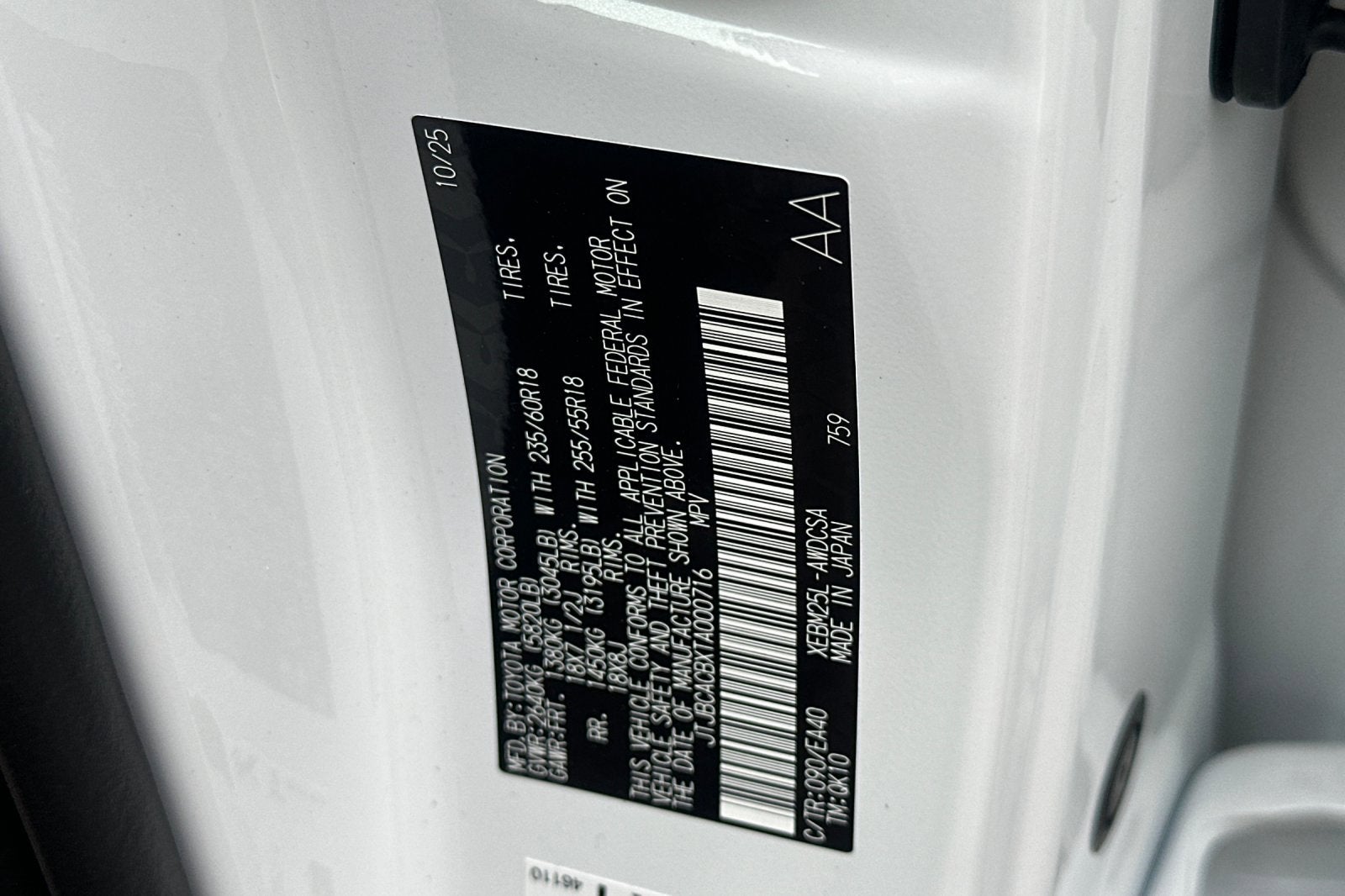 - Front Tire Size: P235/60VR18
