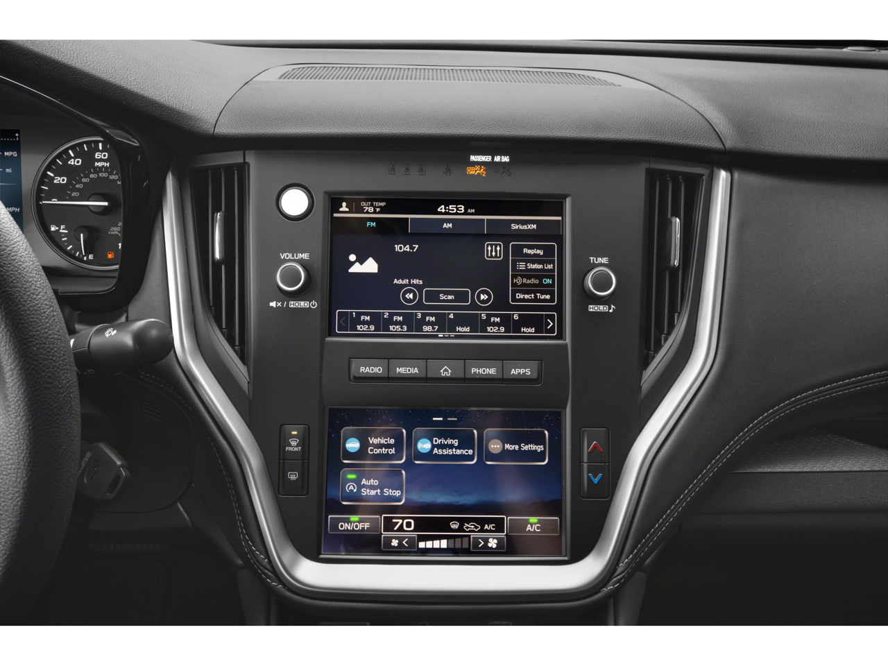 - Radio: Subaru STARLINK Dual 7.0" Multimedia System -inc: AM/FM stereo, HD Radio, multi-touch gesture high resolution display screen, voice activated controls, Bluetooth® audio streaming and hands-free phone connectivity w/SMS text messaging, iPod control capability, SiriusXM All Access radio (4 months free trial/subscription required after), SiriusXM Travel Link (4 months free trial/subscription required after), smartphone integration: Android Auto, Apple CarPlay and STARLINK cloud applications, USB audio system update, 4 speakers, 3.5mm illuminated front auxiliary input jack, illuminated front USB-A and USB-C input/charge port and roof mounted satellite antenna